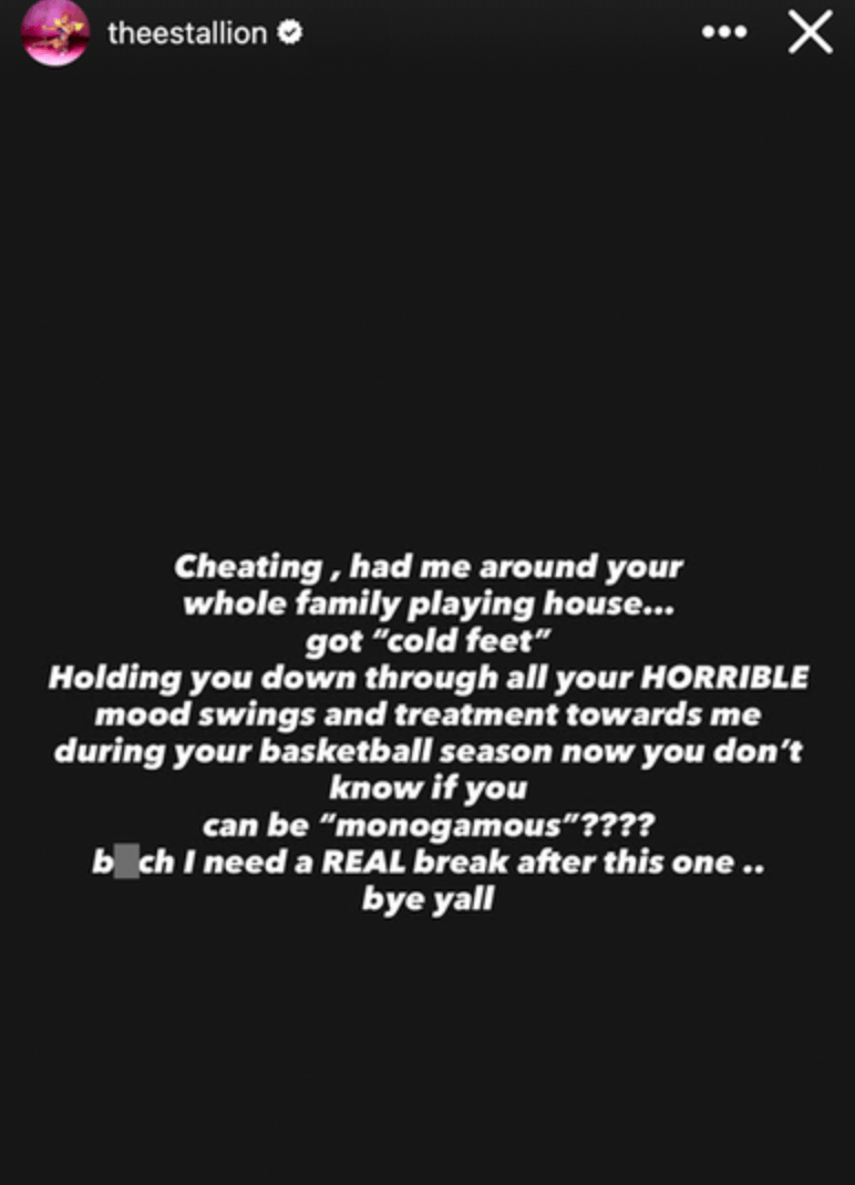 Before the statement, Megan had also posted an Instagram Story that appeared to accuse Thompson of cheating.